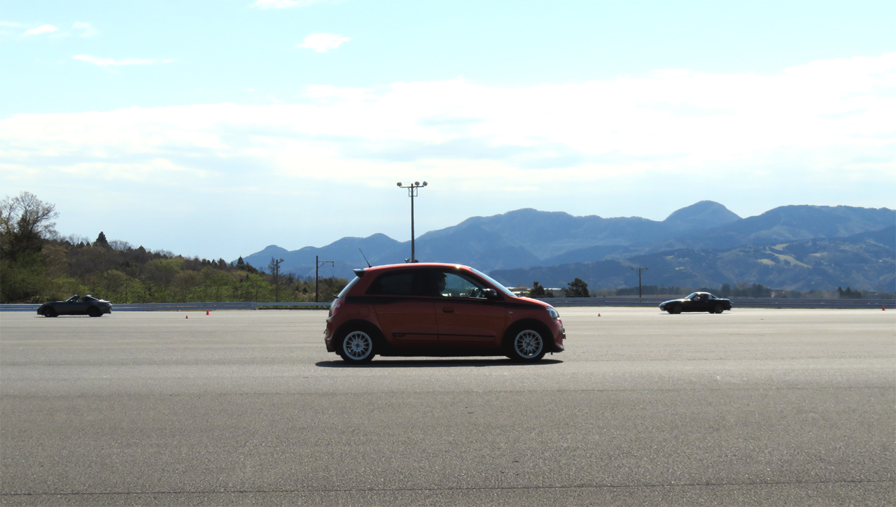 3速全開100キロからのビッグブレーキ。これも悪い例と良い例を目撃してもらうのが目的だけど、ここで望外の挙動を参加者の方にお見せすることができた。その時の画像がないのが残念だけど、想像しながら読んでほしい。