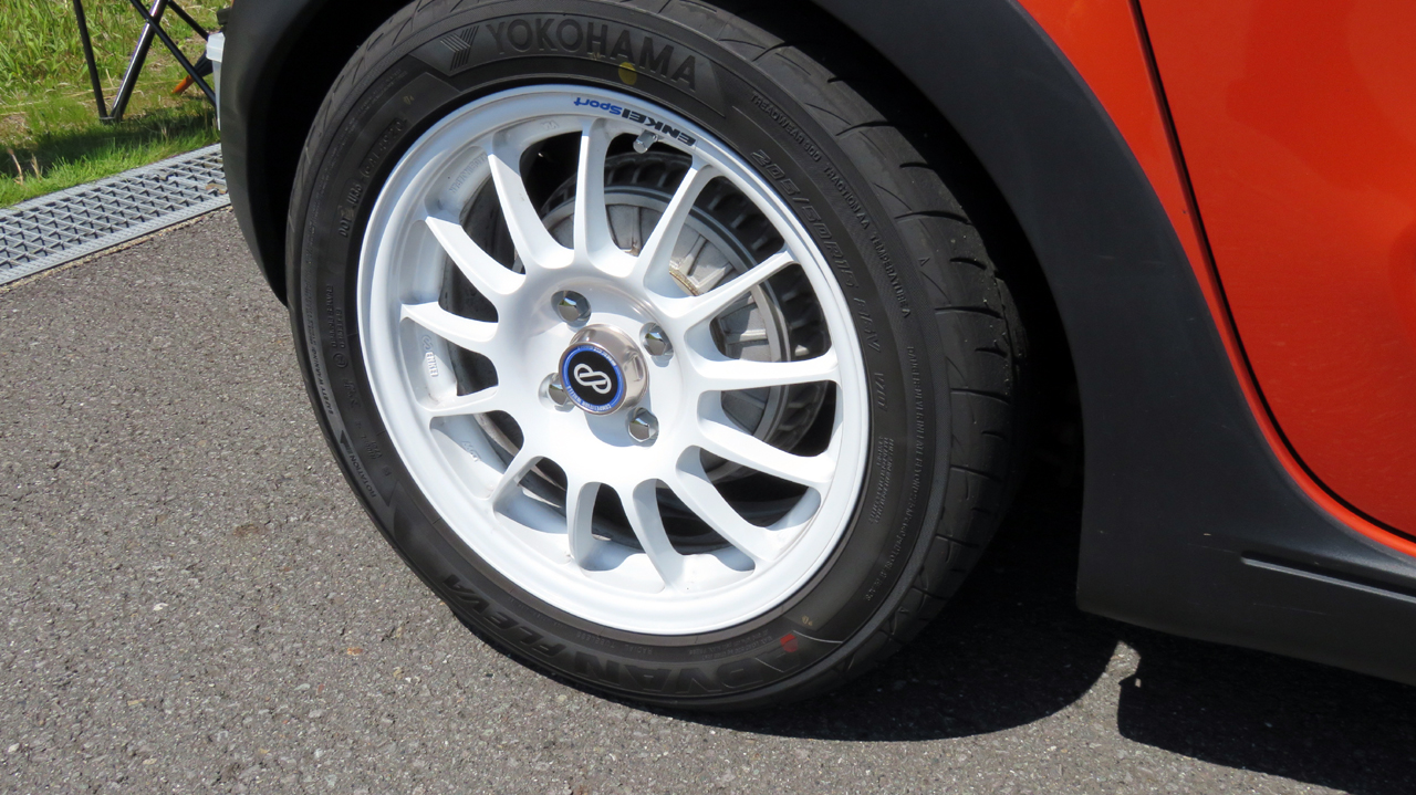 変更して前後同サイズになったエンケイRC-T5は15インチの6.5Jでインセットが45㎜