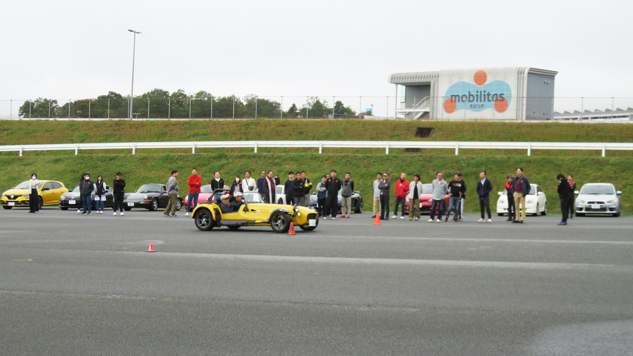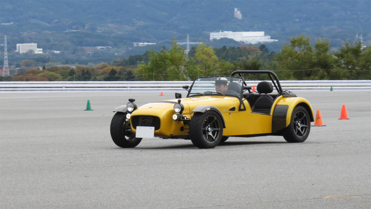エンジンドライビングレッスンにはコペンGR MTで何度も参加されているAさん。先日のYRSツーデースクールFSWにAさん秘蔵のケーターハム480Sでユイレーシングスクール初参加。240馬力/525Kg、2.19kg/ps、パワーステアリング無し、ブレーキアシスト無しの速く走るためだけに作られたクルマ。シリーズ最速のクルマ。運転を楽しむためだけに所有しているというから羨ましい。