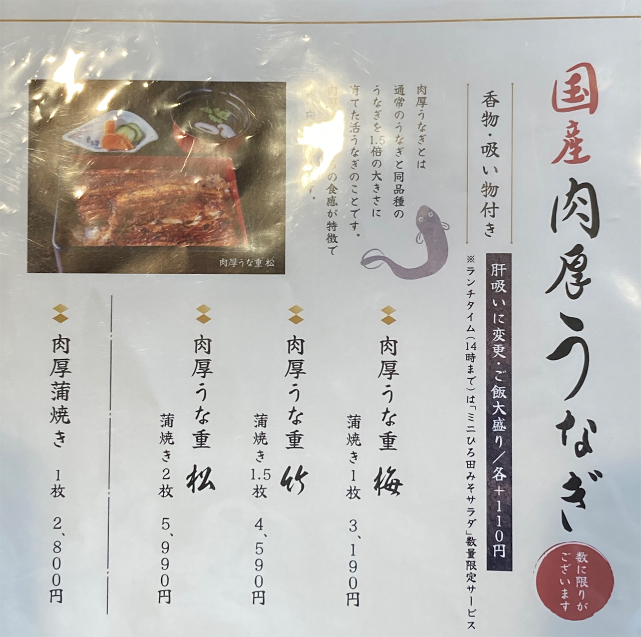 ふつうの2枚より1600円高い肉厚うなぎ選択が