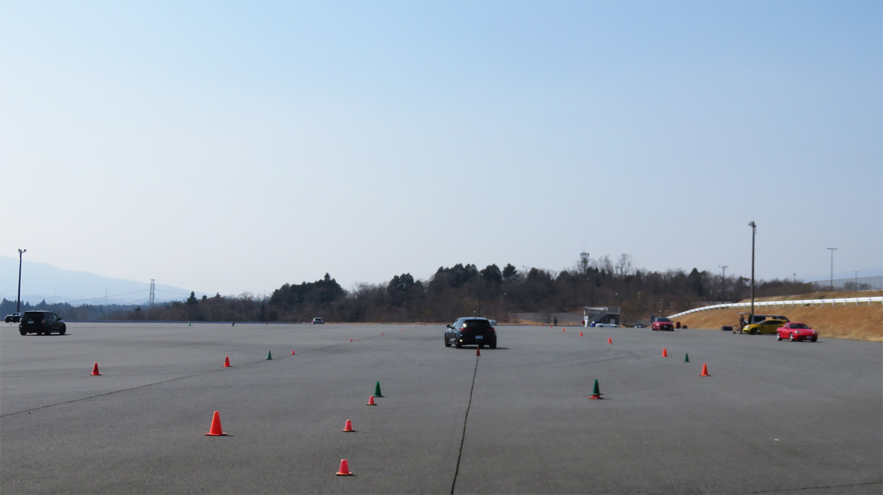 午前中はジムカーナ場にコーンで作ったオーバルコースで