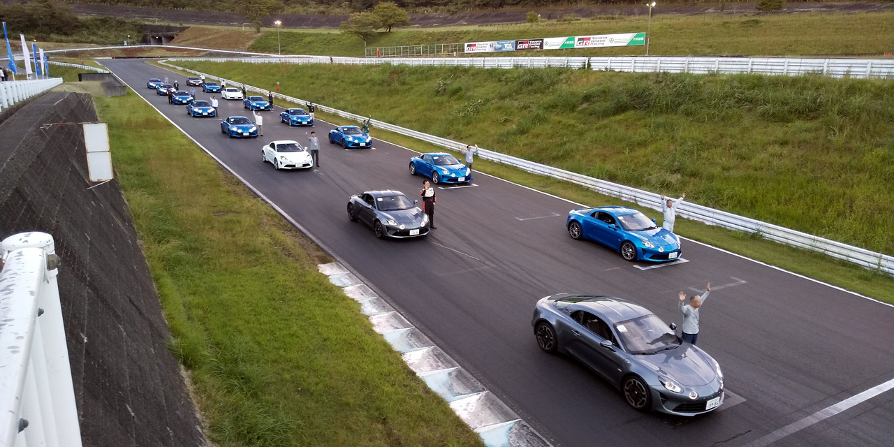 19名のエンジンドライビングレッスン参加者もアルピーヌドライビングレッスン参加者も、サーキット走行を通じてA110の軽さを大いに満喫した一日でした。