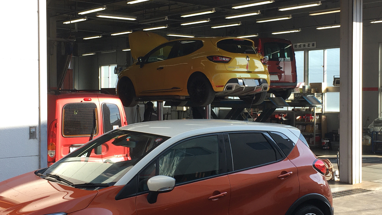 フロントで立ち話しをしていた時に聞いたのだけど ルノー車が売れているとか 確かに入庫の台数が多かったし 駐車場にはメガーヌⅣRSが停まっていた もっと増えろRS