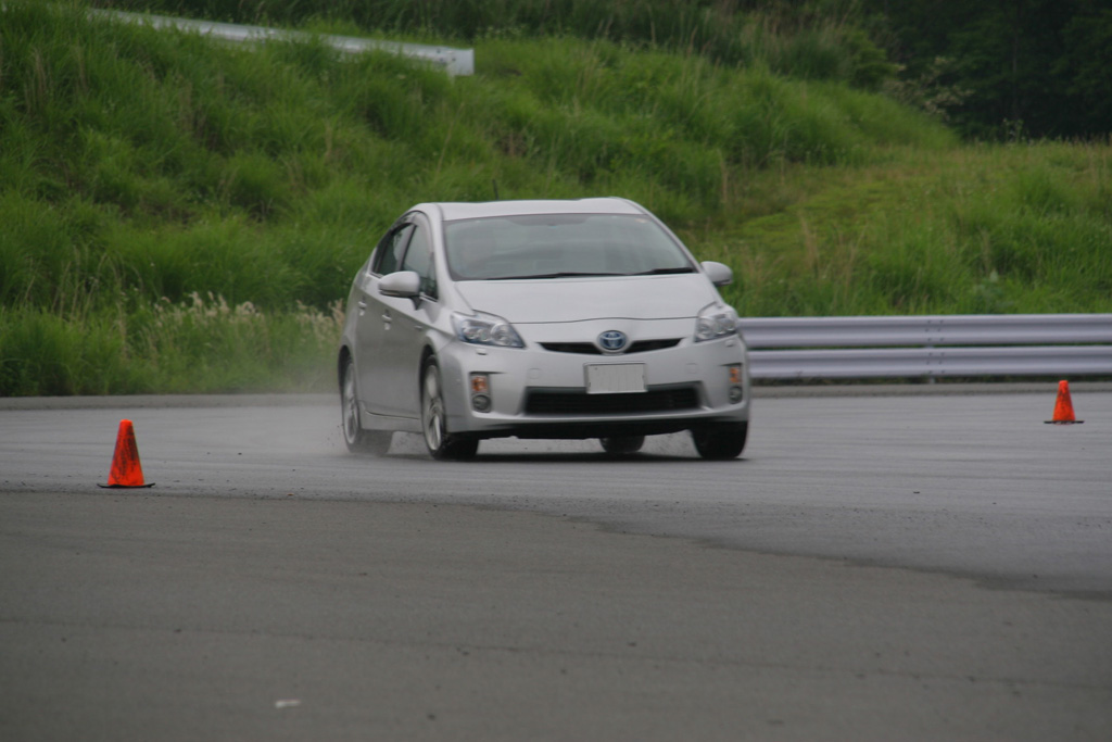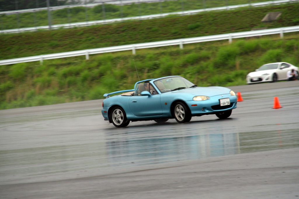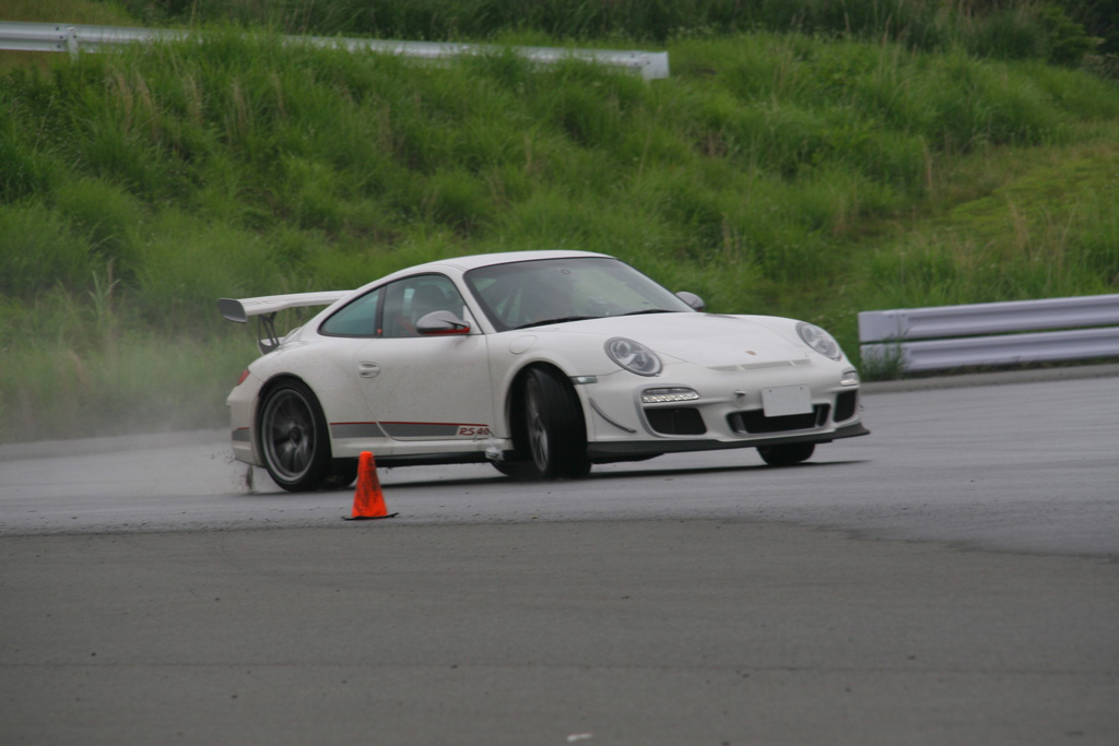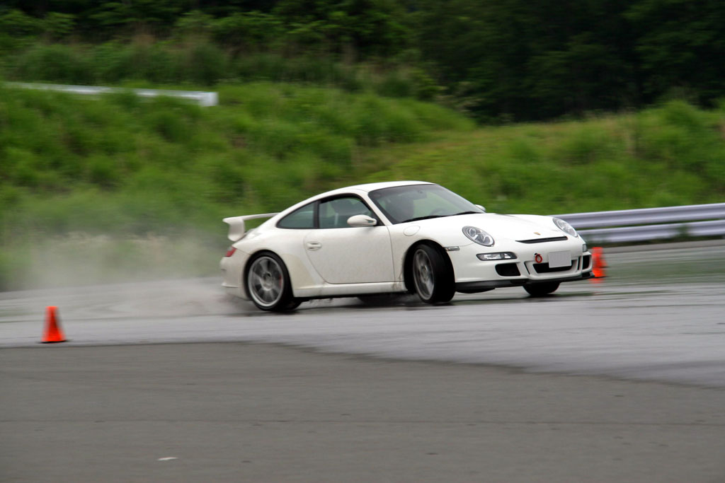これが成功。とにかく、まずテールをブレイクさせるのに参加者全員が四苦八苦。なぜかって?テールが流れる前にそれと察し、修正してしまうからだ。だから運転技術から言えば文句なしなのだが、『リアを思いっきり流してみて下さい』という壁をなかなか破れないというジレンマに陥った。