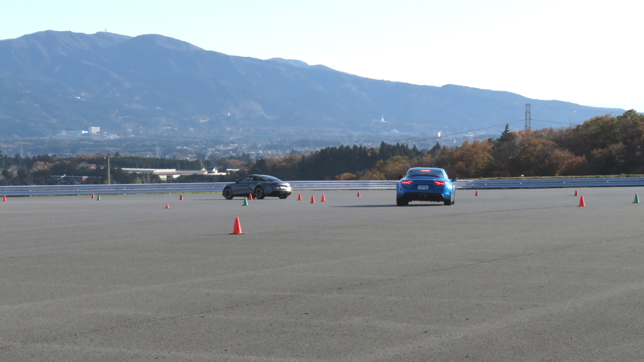 自分はマツダロードスター NB に乗ってスクールに参加していますが、 試乗後ロードスターより軽いのではないかと思うくらい軽やかにコーナーをクリアできたことに驚かされました。2台とも車体の軽さと足の接地感が自分にでもわかるくらいハイレベルで、コーナリング中の姿勢が安定していることに一番感動しました。トムさんが足が柔らかくロールしてタイヤを接地させていると説明されていましたが、十分速度を落としてコーナンに進入さえすれば、ロール、ピッチングの動きが自然で分かりやすく、コーナーの中でも自由自在にラインを変えられるような不思議な体験でした。また現在の高性能車としてはそれほどハイパワーではありませんが軽さが効いているのか十分でした。本当にA110はコーナーが楽しくなる車です。1回目の試乗を終えてトムさんが言われたように、こんな車は今後現れないと言う言葉に頷けました。