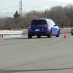 次に、ヒールアンドトウを使うとどんなメリットがあるのかを説明し、その目的からさかのぼってブレーキング中のどの時点でシフトダウンすることが好ましいか確認してもらった。最後に、実際にヒールアンドトウの操作をする時のコツを「止まっているクルマのシートを一番後ろに下げ」て右足の動きを見てもらいながらイメージしてもらった。