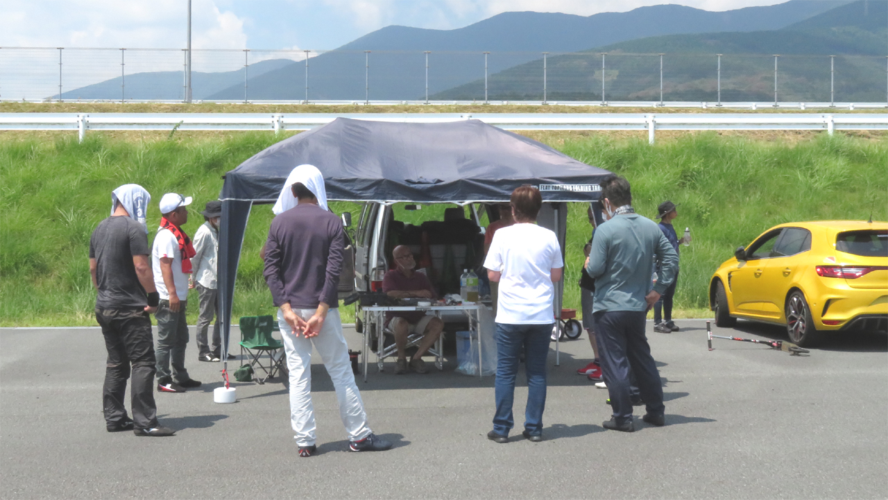 走行の合間のミーティングも密を避けるため