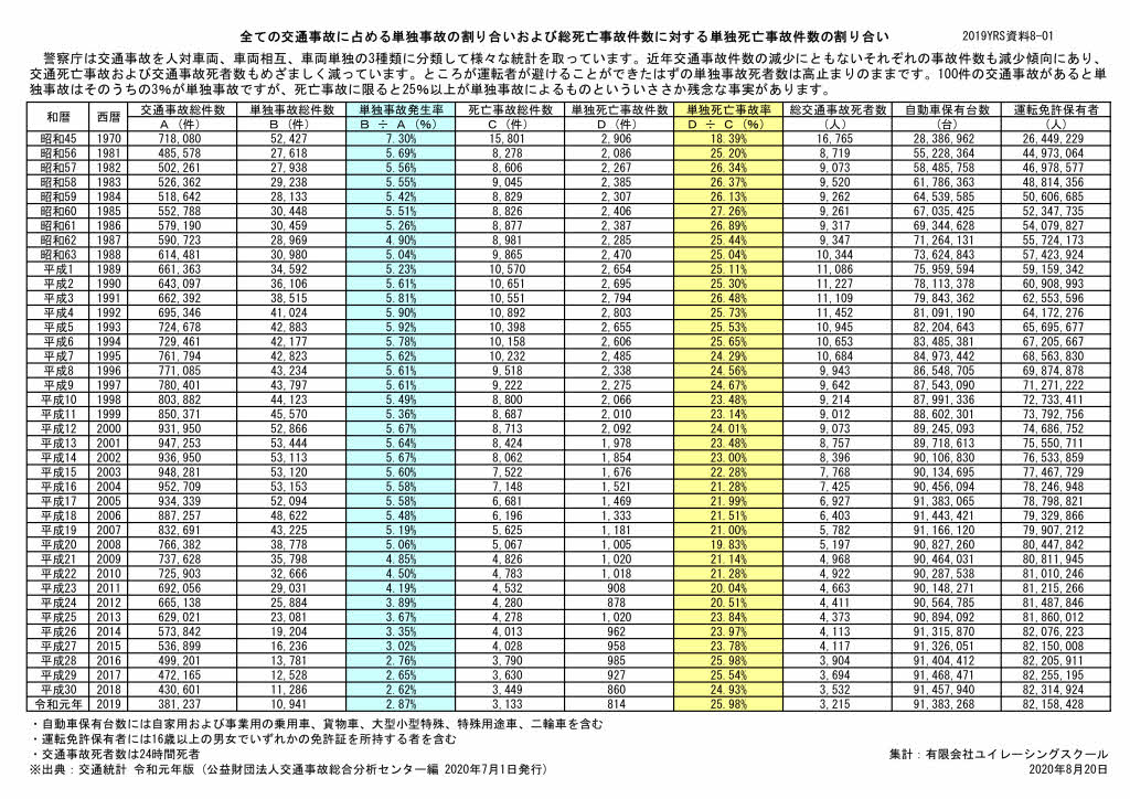 しかし警察庁が分類する「車両相互」「車両対人」「車両単独」の3つの中で