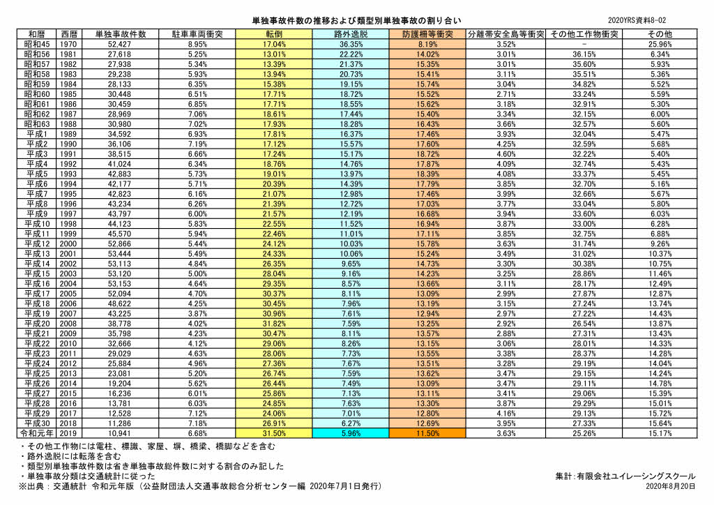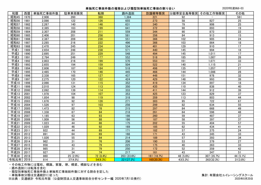 幸いなことに単独事故に起因する死亡事故は減ってきている