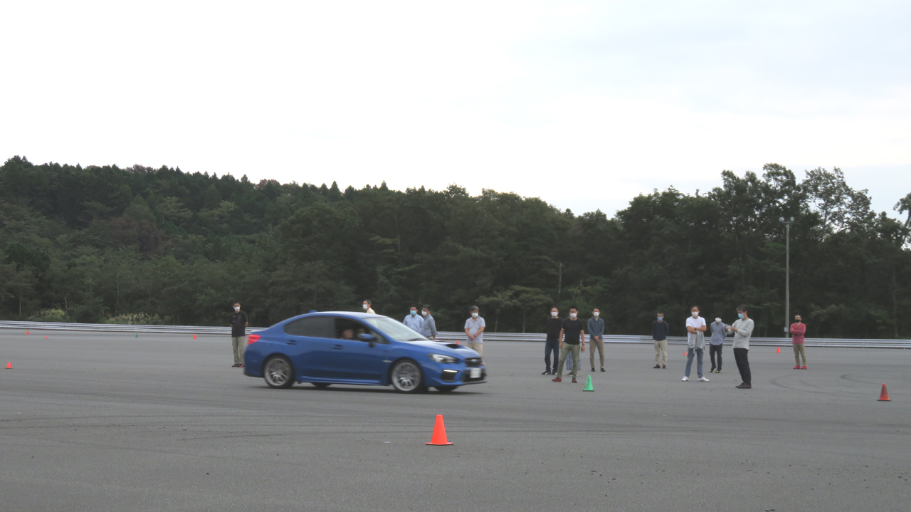 半径22m直線130mのオーバルコースを周回しながらブレーキタッチを練習します