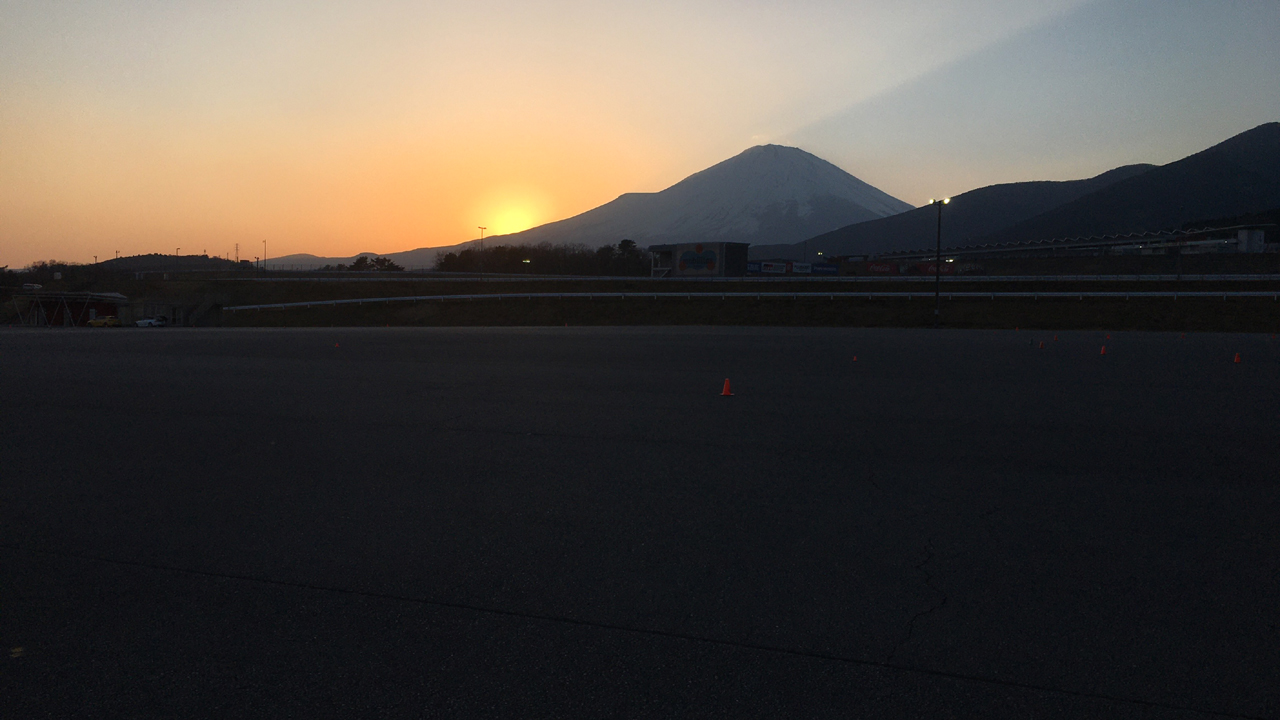 日曜日のスクールのためにコースを変更中に仰いだ富士山