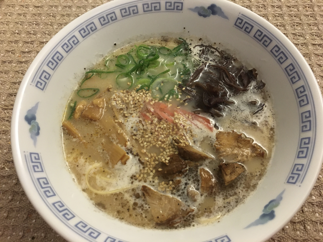 チャーシュー/きくらげ/メンマ/紅しょうが/ネギ/ごま入り