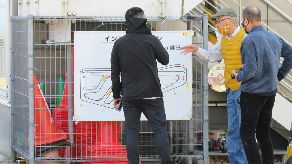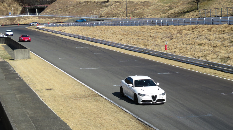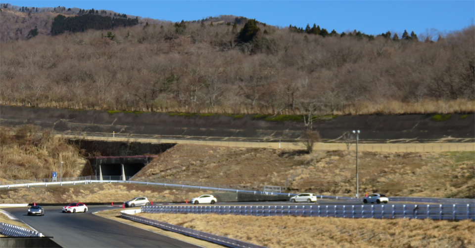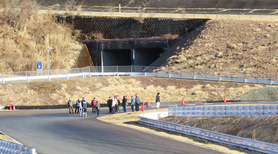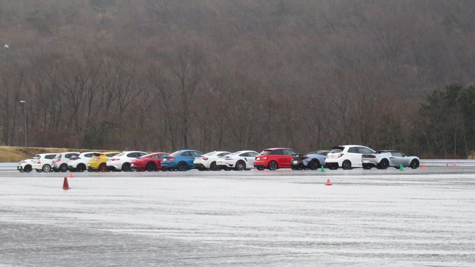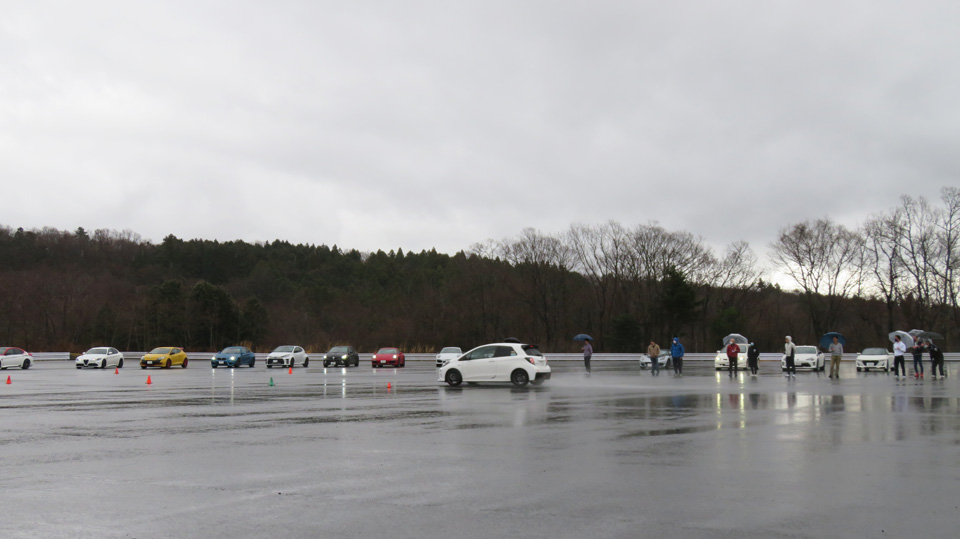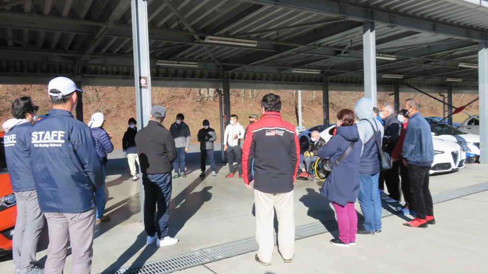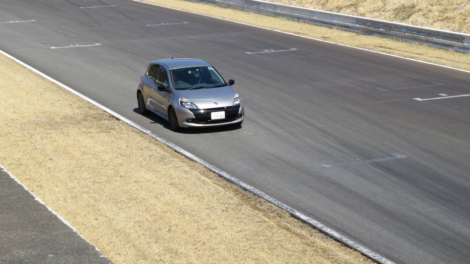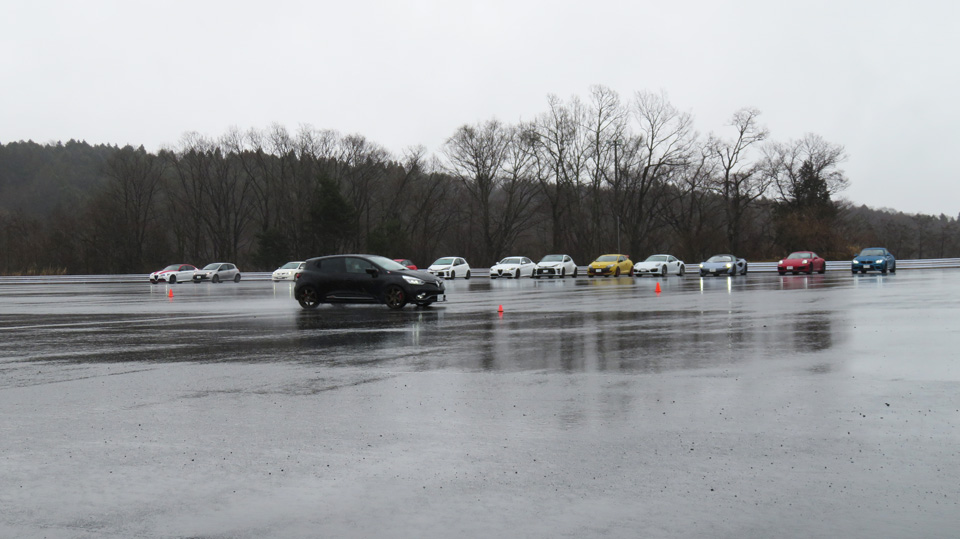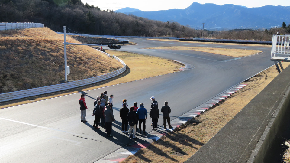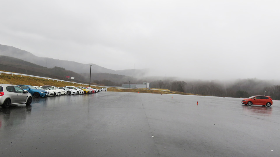 リアタイヤに意識的にスリップアングルをつける操作を見学してもらう