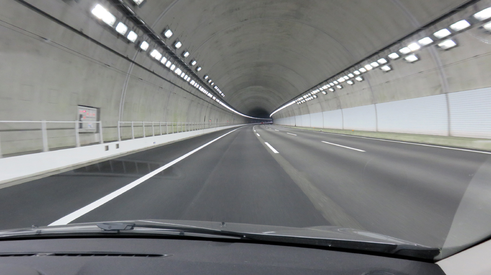 トンネル内の電光掲示板は100キロだった