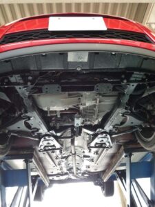 リフトアップされた相棒を下から見せてもらう。もちろん工場の許可を得た上でだ。