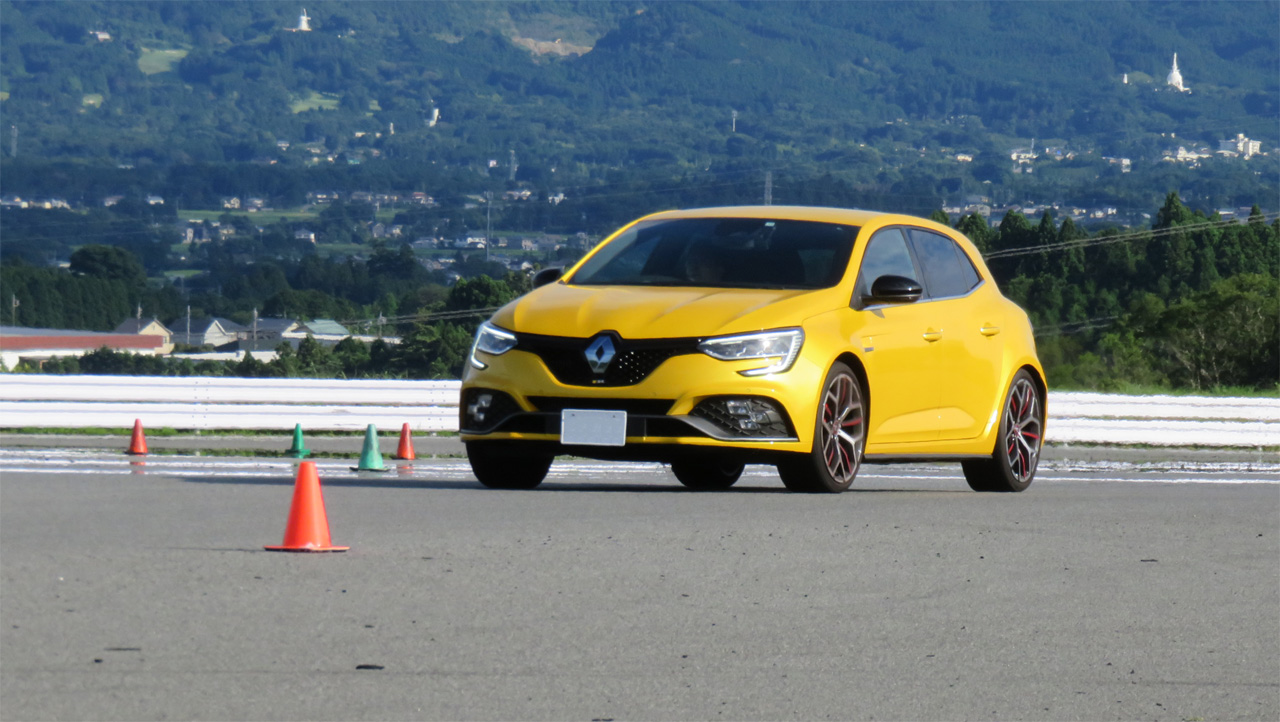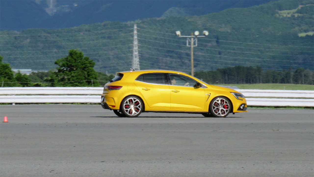 申込みフォームの参加車両欄にメガーヌRS、クルマの色欄にイエローとあった。これはトロフィーだなと想像しながら迎えたスクール当日。Eさんは案の定真新しいメガーヌRSトロフィーMTで現れた。スクールが終わり厚かましくも初めてユイレーシングスクールを受講したEさんに感想文をお願いした。