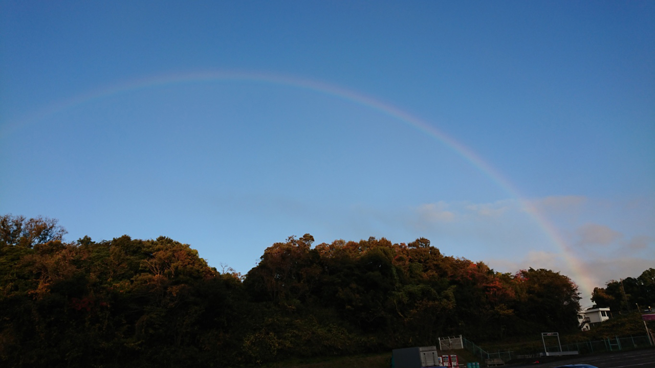 スプーンカーブ方向に大きな大きな虹が