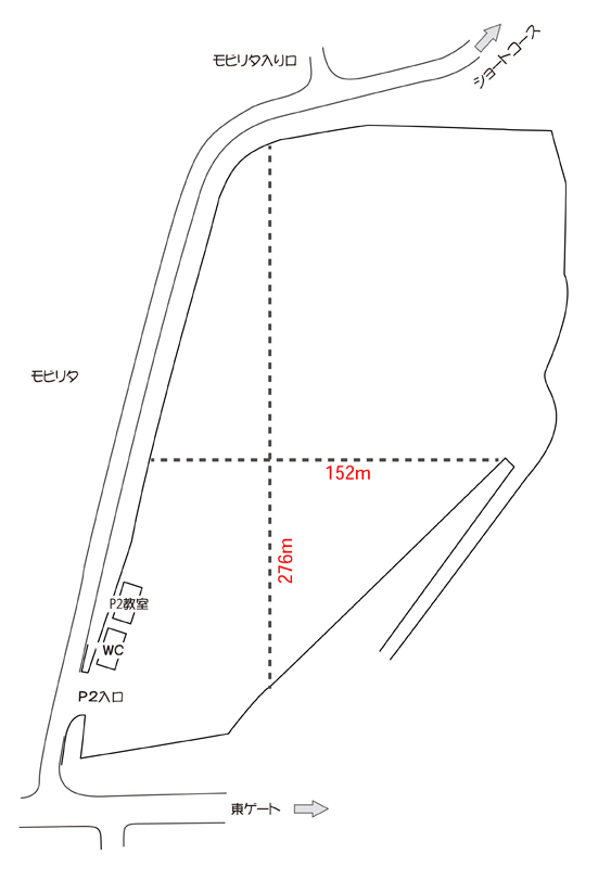 富士スピードウエイ(FSW)の東ゲートをくぐり正面の坂を上っていくと右手の高いところにFSW最大の駐車場があります。下の図のように南北に270m余り、東西に150m余の広大な駐車場です。その駐車場、FSWの協力を仰ぎユイレーシングスクールが最初にドライビングスクールの会場として使うことができました。当時はガードレールも教室もなくトイレがあるだけの単なる駐車場でした。駐車場でドライビングスクールなんてできるの、なんて声が聞こえてきた時代です。それでも広々とした舗装された駐車場のような空間でドライビングスクールをやりたい理由がありました。