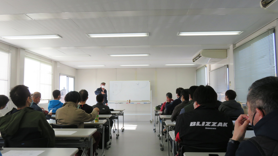 座学ではクルマの運動特性とそれに対応するクルマの動かし方を説明します