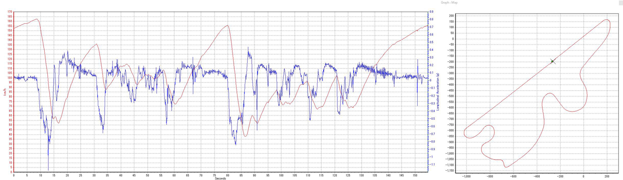 1コーナーへのブレーキングでは最大マイナス1.133Gを記録