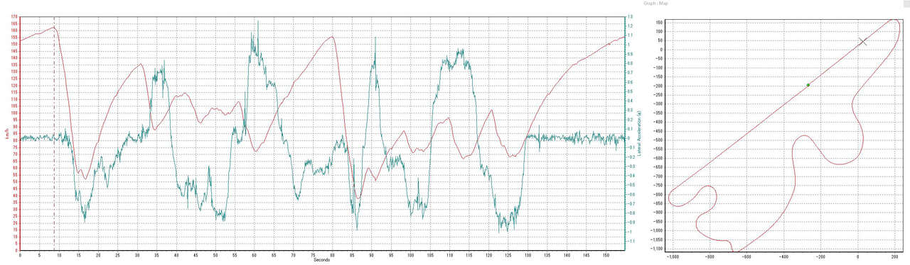 最高速は1コーナー手前200mの看板で162.39Km/hを記録