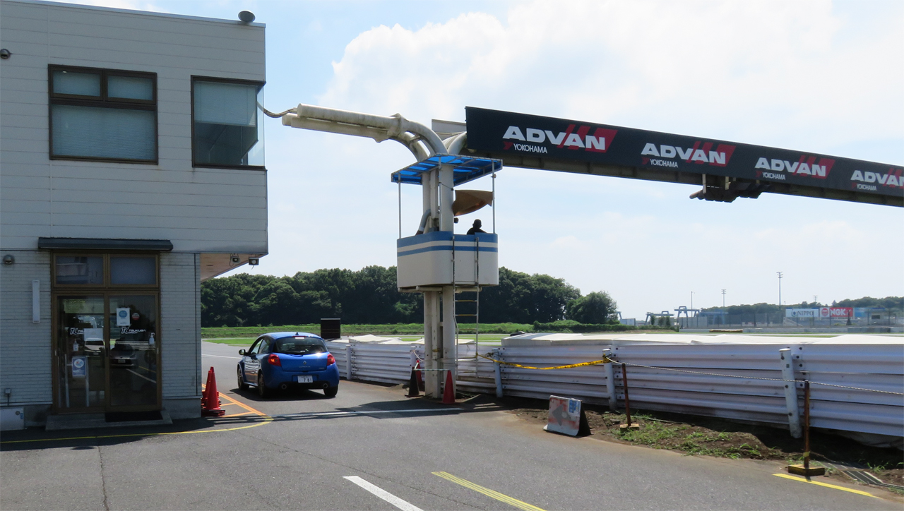 筑波サーキットコース1000 この日の午後3時 フラッグ台の日陰の温度計が 37.5℃を指す 路面温度は? 室内温度は?