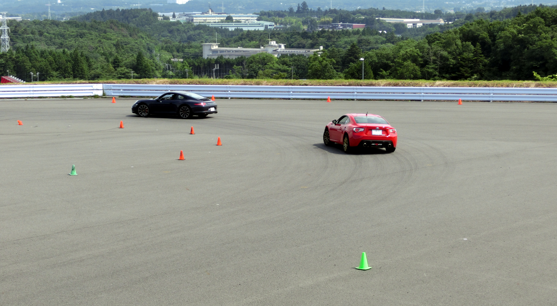 ポルシェのように動力性能の高いクルマはそれなりのデザインがなされている。タイヤが太いのもその性能を生かすためだ。しかしながら、どんな場合でもその性能を発揮できるとは限らない。特にYRSストリートのようないやらしいコースだと、太いタイヤが走行抵抗となり、BRZより重い車重もコーナリングスピードを殺ぐから、その性能を生かせる区間が短くなる。どんなクルマでも40秒を切れれば95点、というレイアウトにしたのだから、ポルシェはポルシェ、ロードスターはロードスターなりに、それぞれコースに合わせてそれなりの走り方を構築する必要がある。