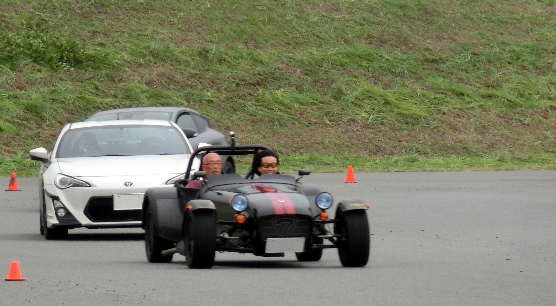 次のセッション。何度かトライしたKさんはムニョムニョを克服。「下のコーナー」を抜けて2速から3速に上げるころにはパワーの差が現れるけど、コーナーの立ち上がりではNさんのテールにしっかりと貼りつけるようになった。