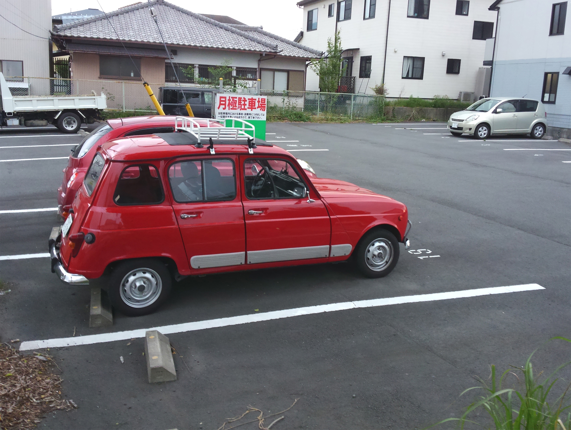 富士スピードウエイでスクールがある時に泊まるホテルの近くに、いつも足を運ぶお魚がおいしい赤提灯がある。遠くないのでホテルから歩いて行くのだけれど、その道すがら、ある駐車場にきれいな色の赤いクルマが止まっている。