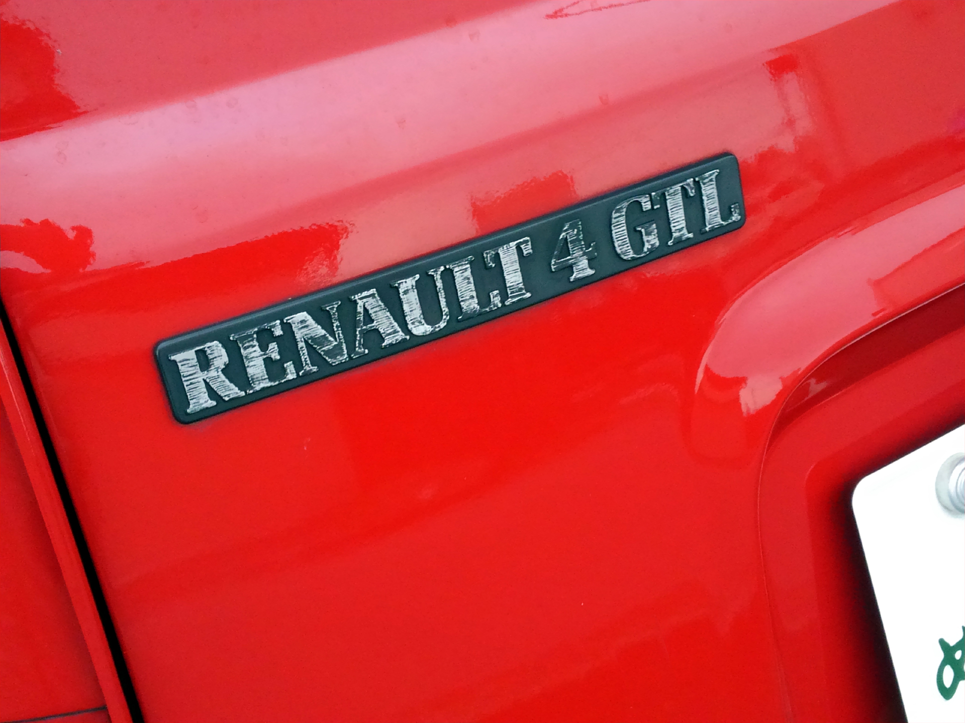 ある日、開店までに時間があったのでクルマの周りをグルリ。外観より実際の車齢に近いようなエンブレムに「RENAULT 4 GTL」とあった。
