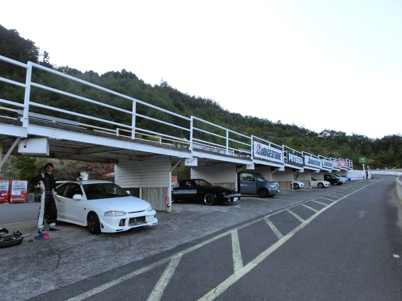 阿讃サーキットは1周1004mと長くはないし、エスケープゾーンはほとんどないに等しい。アップダウンに富んでいてすごく面白いけど、コース後半の下りは回りこんだコーナーの連続で速度は乗らない。路面も決してスムースとは言えない。