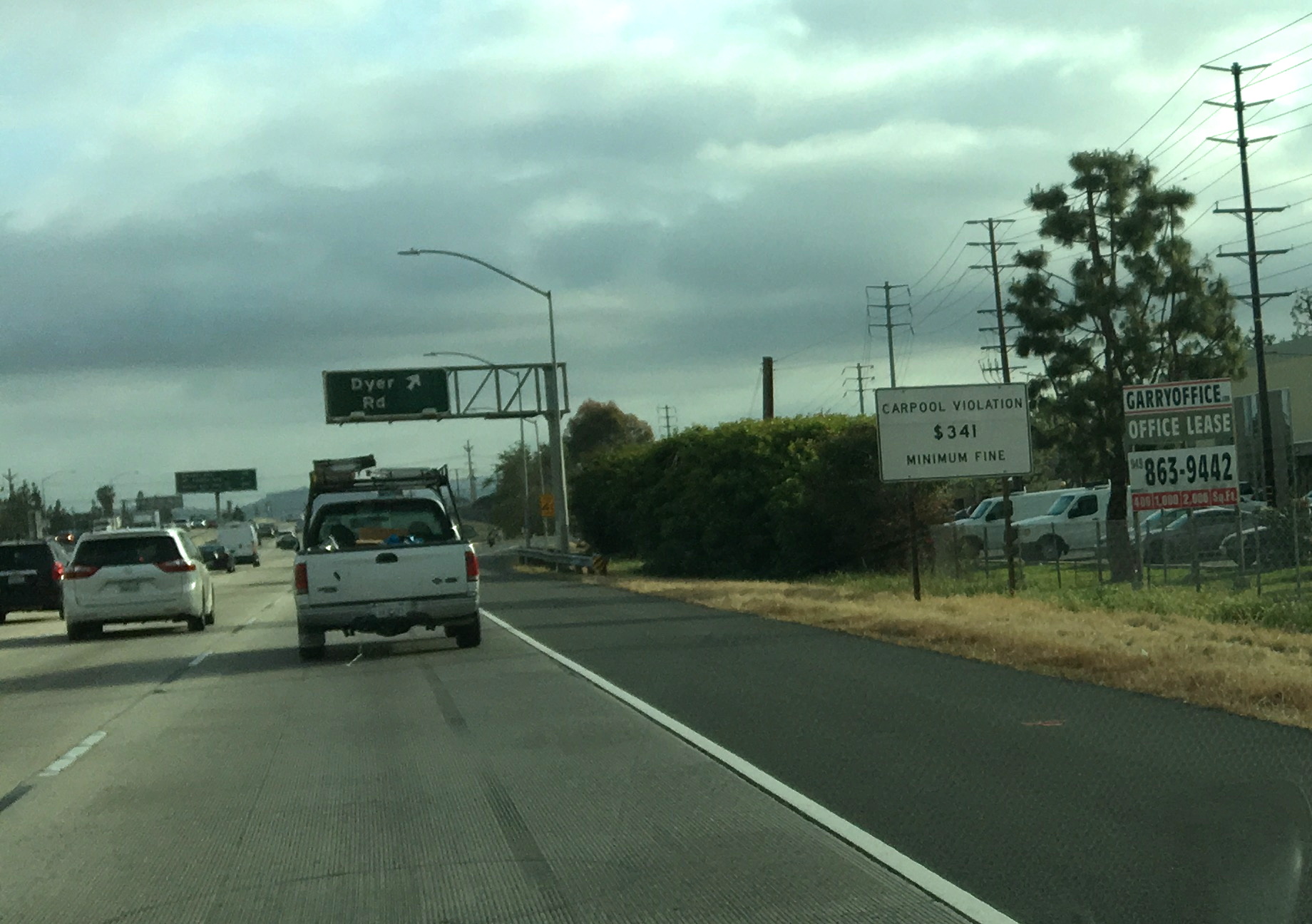 しばらく進みオレンジカウンティ方面に向かうため405Southに向かう。いくつかの合流を経て5車線プラスカープールズレーンの405に乗る。とたんに交通量が増える。頻繁な車線変更あり。