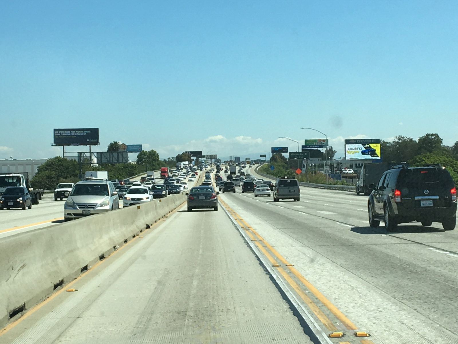 405フリーウエイはアメリカ西海岸をメキシコとカナダを結ぶ大動脈のインターステイツ5号線の「海寄りバイパス」のようなものだから、1日中交通量が多い。