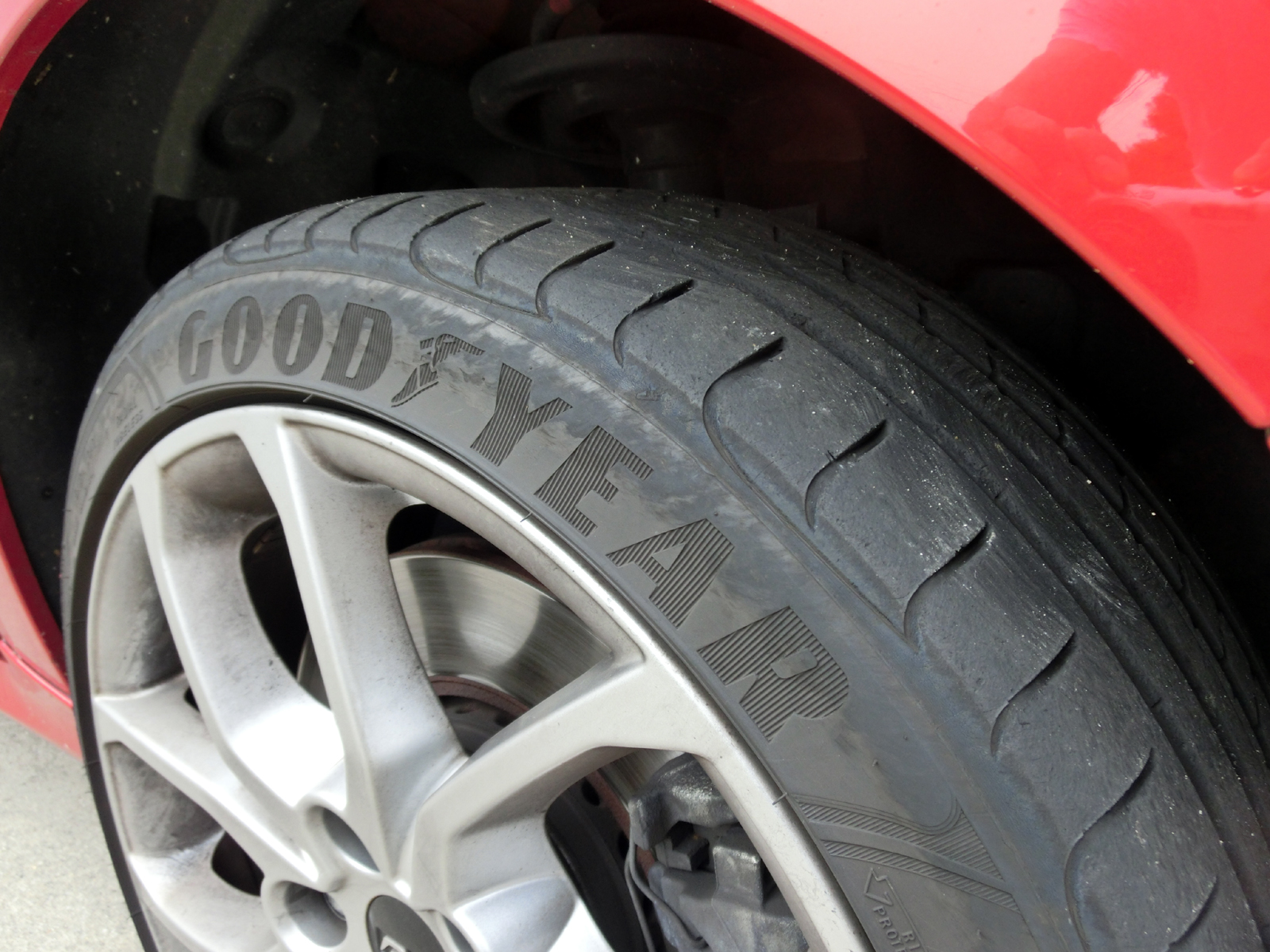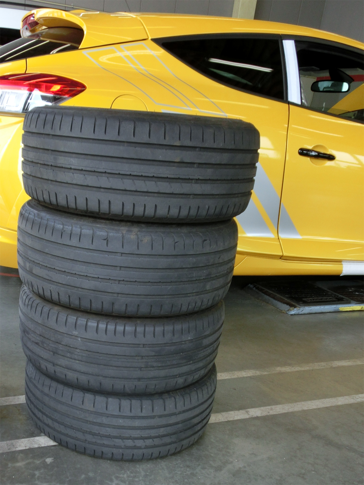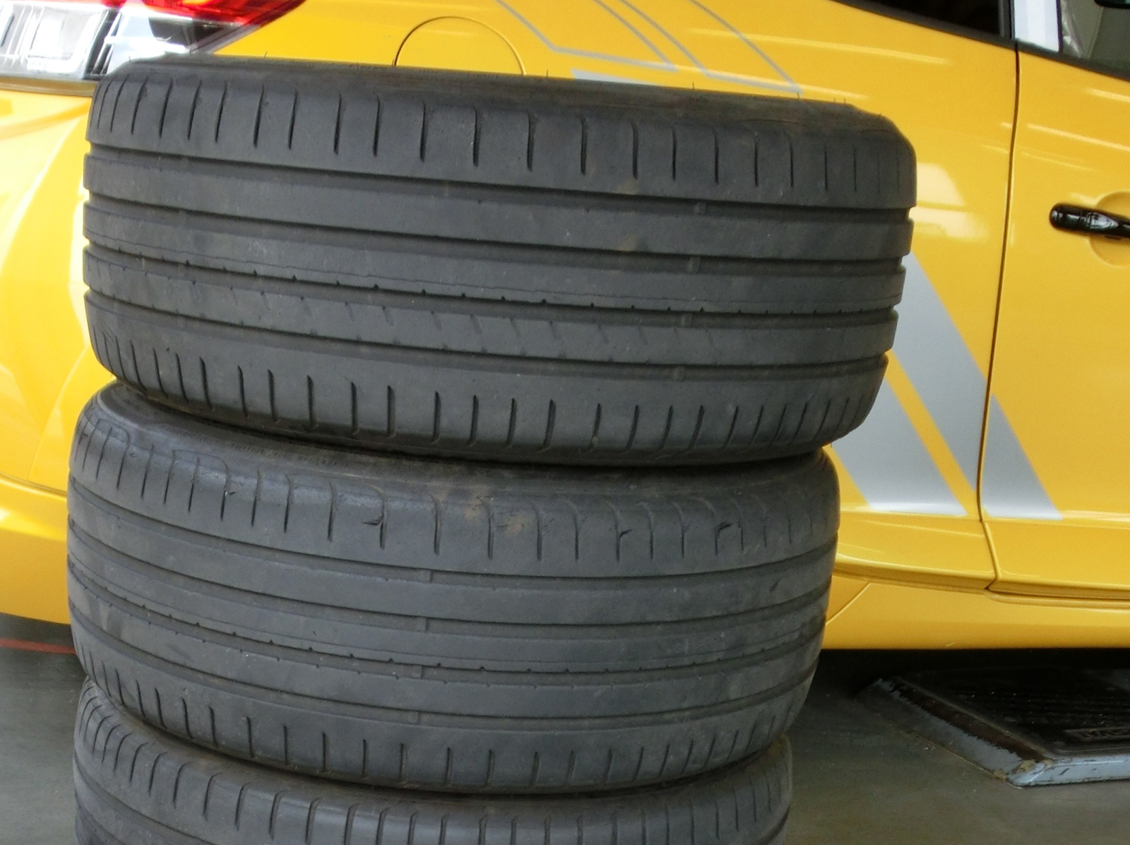 とは言え、サーキットと駐車場にあつらえたパイロンコースを含め5万キロ近く走ったのだから、ショルダーの磨耗が進むのはいたしかたなかった。スクールの参加者に乗ってもらった時にもタイヤをこじらないようにアドバイスしたのだけど、そこはハイパワーのFF。ショルダーのエッヂが丸ぁるく削れるのを避けられなかった。