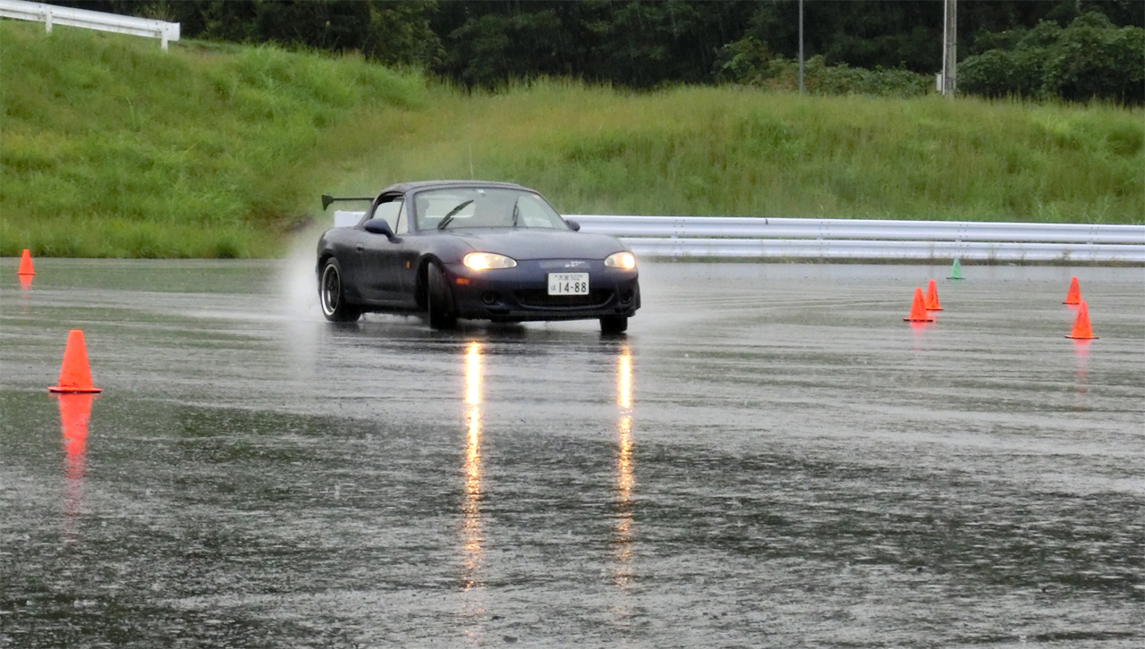ユイレーシングスクールのモットーはそれなりに、だから、これまでは雨でもYRSオーバルレースを開催してきたけど、ここは発想を転換してスキッドスクールに変更してみてはと諮ったらみなさん賛同してくれた。Yさんが見つけてきたR.S.Monitorで試したいこともあったものだから。