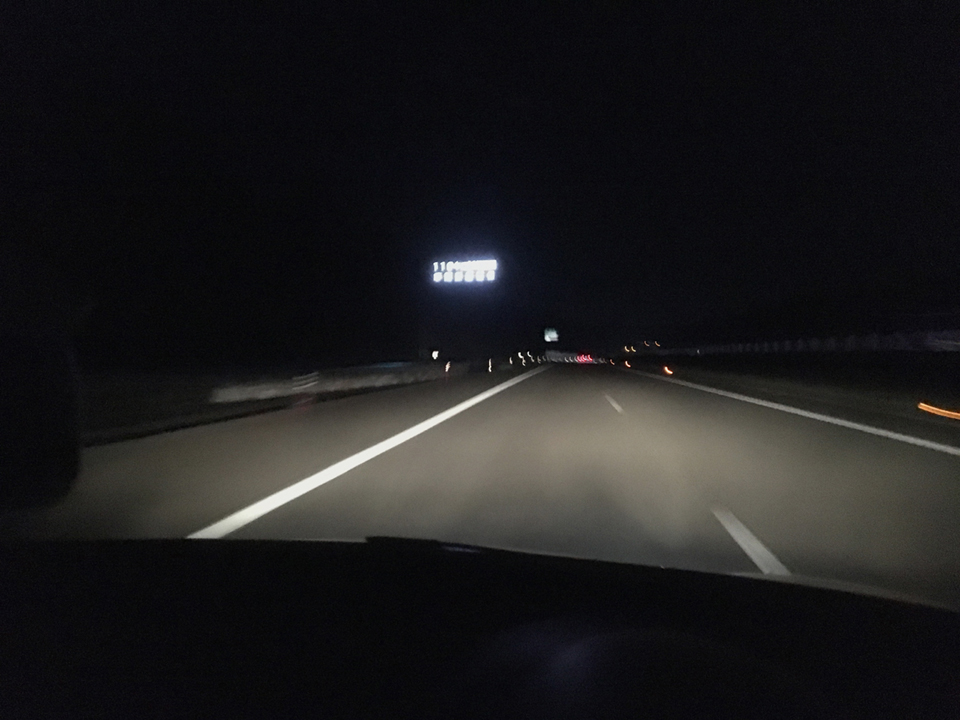 もとより速度抑制装置がついた大型トラックが同じ速度抑制装置のせいで速度を上げられない大型トラックを追い越そうと追い越し車線に出てくるのが高速道路の流れを阻害する最大の要因なのだが、この夜も深夜ほどトラックが多いわけでもないのに相変わらず追い越し車線を占拠する大型トラックが後をたたない(彼らには彼らの事情があるのはわかるが、それは別の話)。