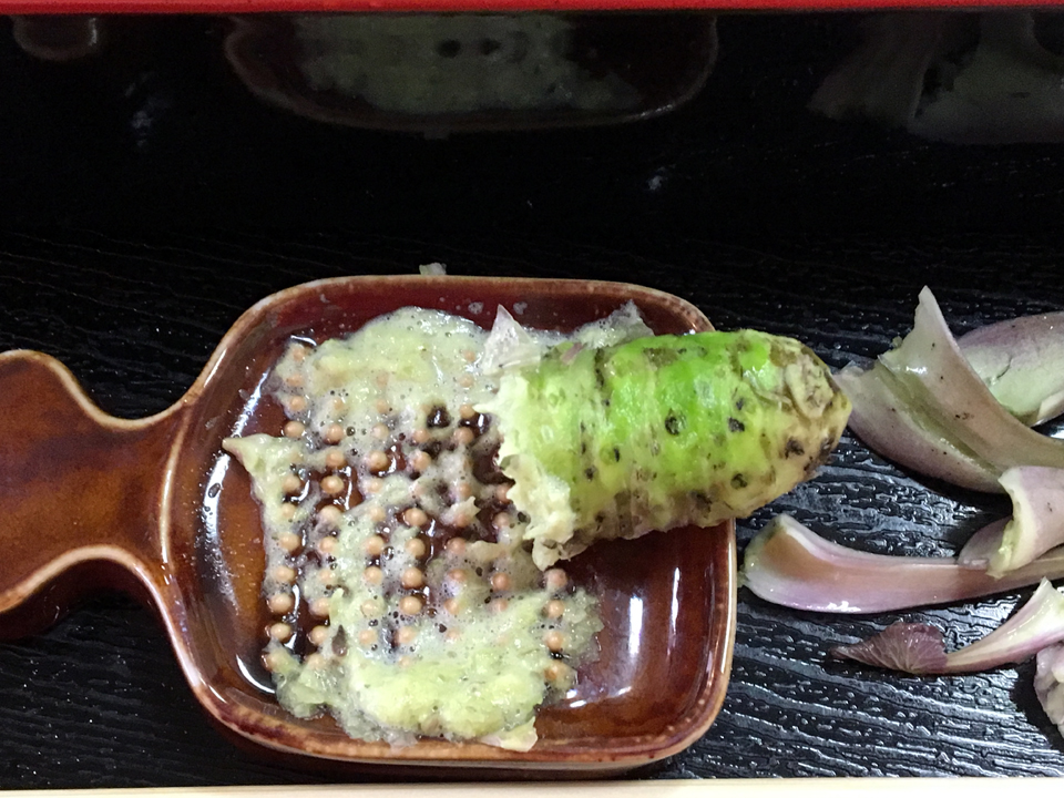 何も足してないおいしいわさび漬けとわさび菜の三杯酢漬けも味わえる