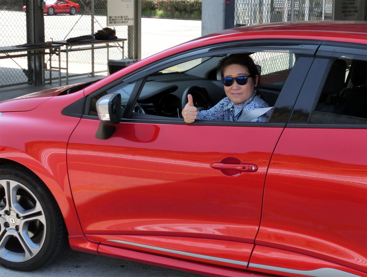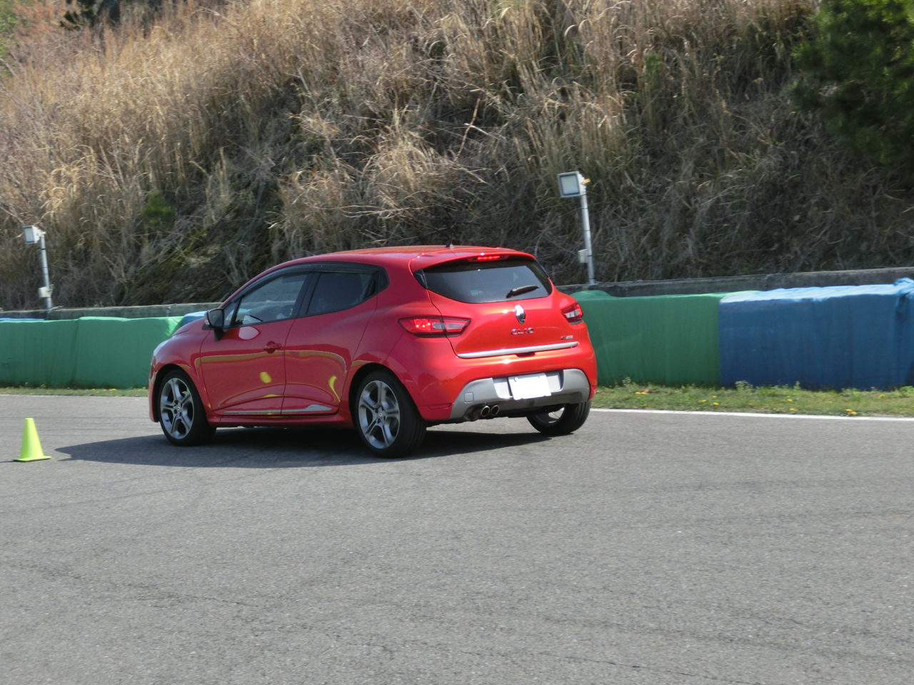 そして決心して参加したスクール。午前中のメニューのブレーキングで、自分が普段しているブレーキの使い方の確認ができて、CLIOに対する信頼も実感できたのだと思います。その後はすんなりと運転に集中でき、思い切りアクセルを踏み、ハンドル操作をしました。思い切りアクセルとブレーキだなんて!