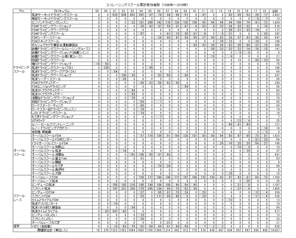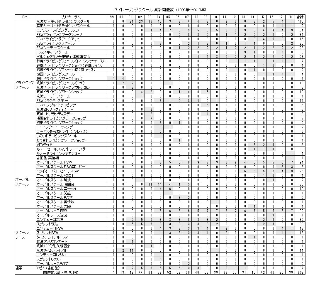 次へ進むためにデータを整理したら、今までに開催したドライビングスクールとスクールレースは839回に、延べ受講者は16,367名になっていた。
