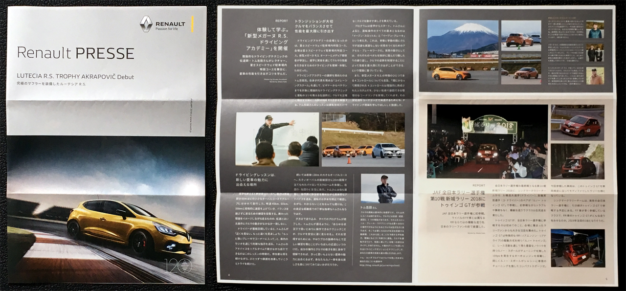ルノープレス1月号に新型メガーヌRSドライビングアカデミーのレポートが載っている