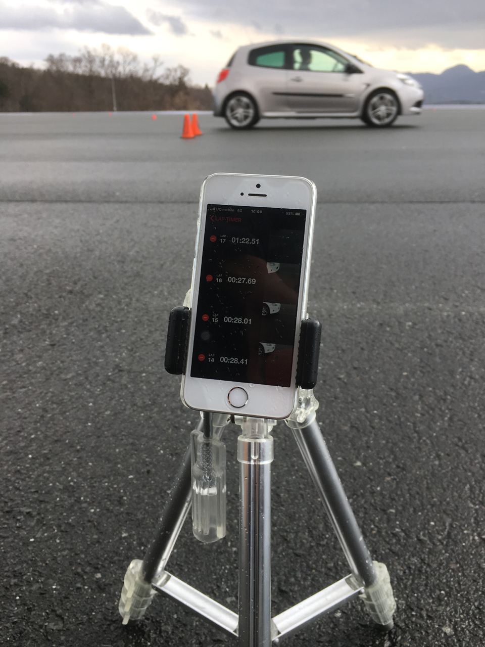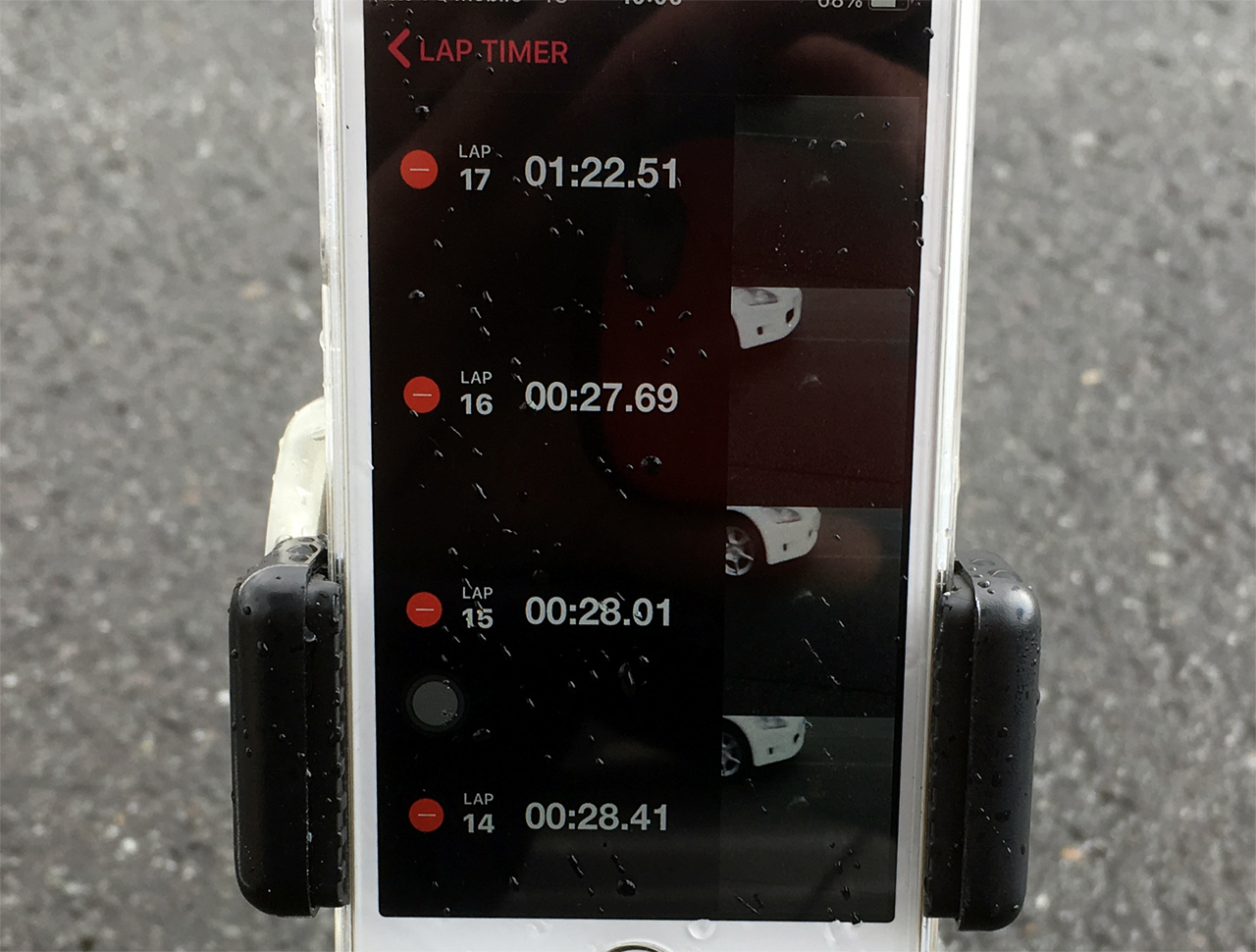 LapTimerと呼ばれるiOS用無料アプリは本来、ミニ四駆のコースでラップタイムを計測するために開発されたようなのだが、YRSオーバルレースで光電管の代わりに予選タイムを計測してみた。1台ずつしか計れないのが難点だけど、光電管が使えない雨の日に重宝しそう。
