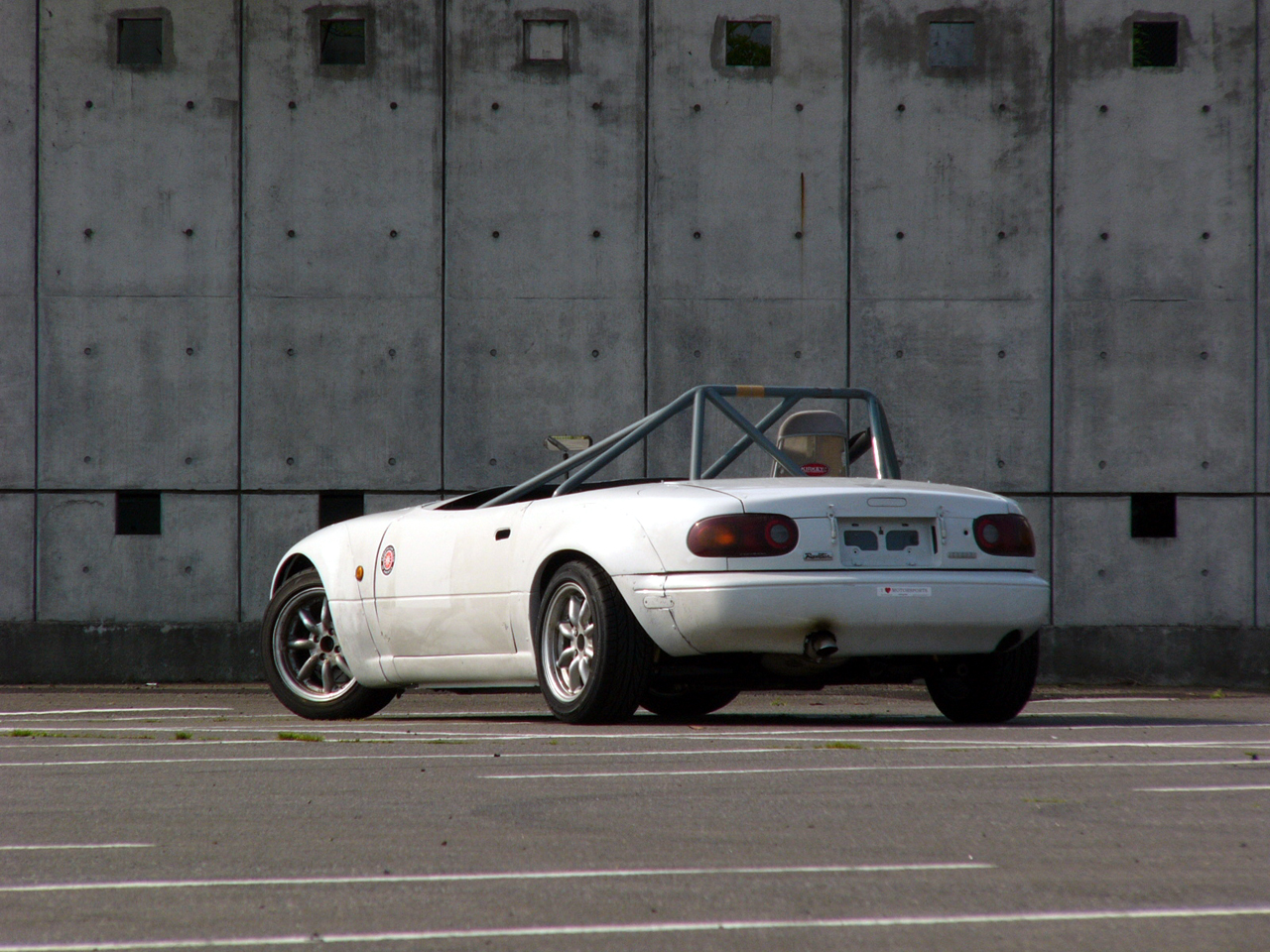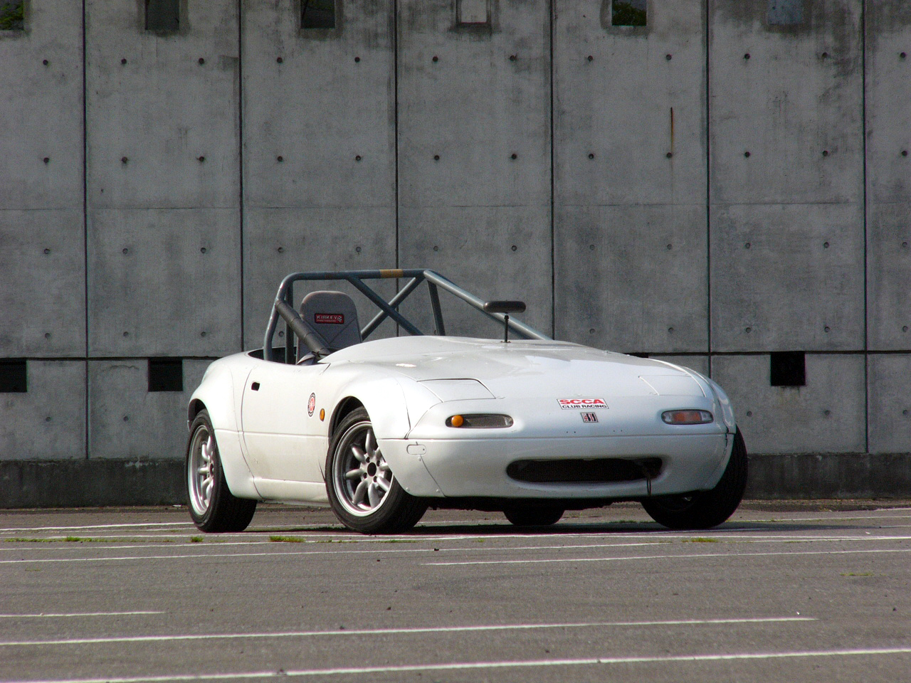 A110とは何の脈絡もないけれど、下の写真は軽さという共通項があるので引っ張り出したNA6ロードスターのレース仕様。ユイレーシングスクールの卒業生(スクールを受講した人の意)とレースに出場しようと作りあげた。テーマはとにかく軽く、風の当たるマシン。一応、アメリカのSCCAの車両規則でEプロダクションに合致しているから、SCCAカリフォルニアリージョンに持っていけばレースに参加できる。