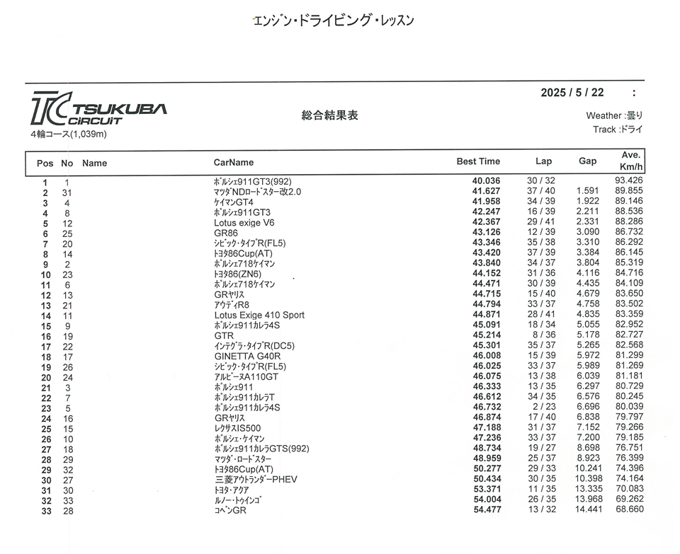 1日でみなさんそれなりにドライビングポテンシャルの向上が見られました